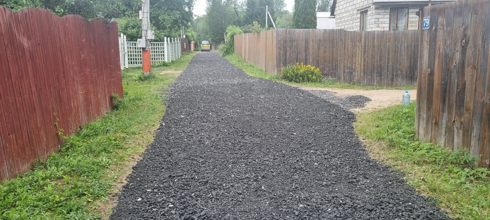 Укладка асфальтовой крошки в посёлке в Дарницком районе